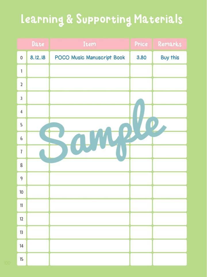 With this publication, Poco Studio have created a beautifully laid out lesson planner suitable for all young musicians. Each week is dedicated a double spread with sections for Scales & Technique, Pieces, Sight-Reading on one side and Aural/Musicianship, Music Theory and Music Appreciation/History on the other. Pastel colours and endearing graphics make this Lesson Assignment Book really stand out.