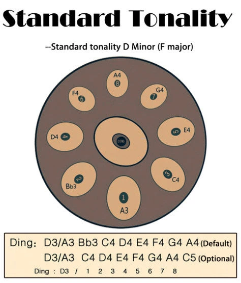 D Minor 9 notes hand pan (D3, A, Bb, C, D, E, F, G, A).