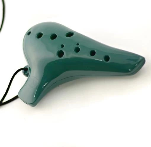 Soprano ocarina in C. 13 holes (10 top and 3 rear). Solidly constructed in ABS and supplied in a cloth pouch. Includes wrist sling.