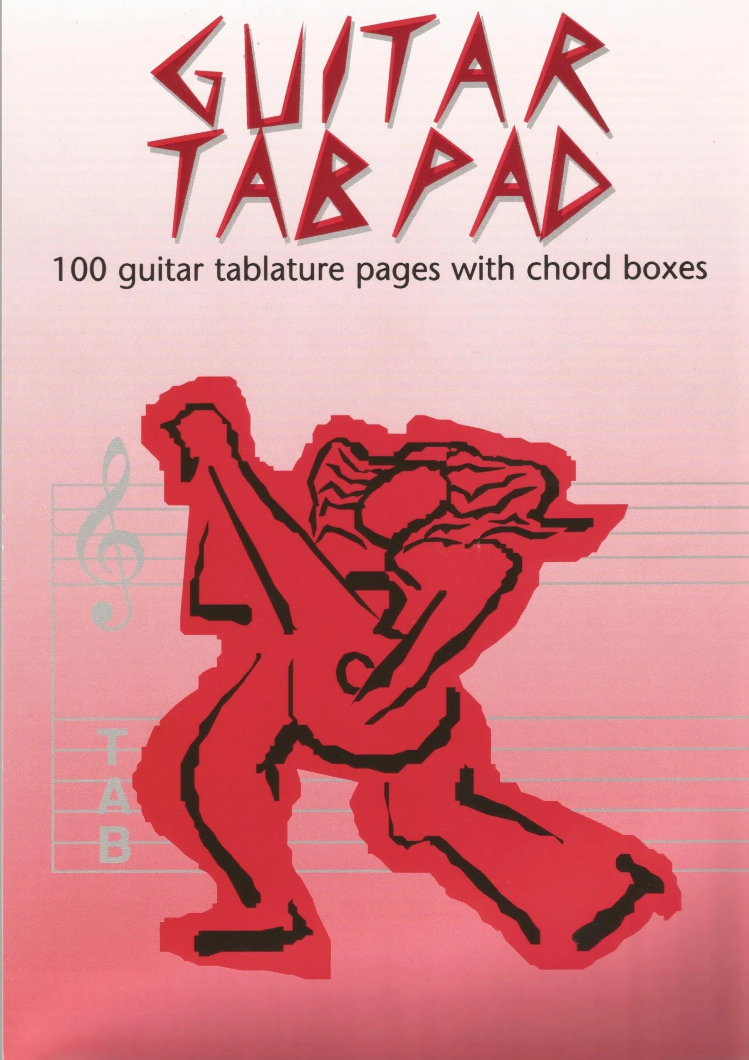 Professional Guitar Tablature Pad. 50 double-sized pages. 6 TAB and 5 standard notation staves, with chord boxes above, per page.
