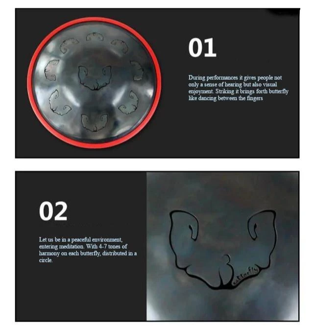 As very newly-developed musical instruments, steel tongue drums do not require complicated musical theory or any rudiments of music. You can play tongue drums by much improvising, and could make different performance each time, even on the very same song. They can be played by drumstick (soft mallets) or by bare hands, beating, patting, or finger patting, with no fixed musical background. Can be played by anyone of any age, easily portable and perfect for Yoga, Zen, Sound Healing, Personal Meditation, and Stimulates Imagination and Creativity.