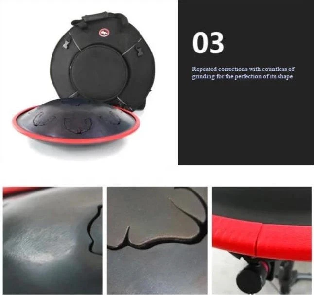 20″ Metal 9-Note Hand pan Drum with Carrybag is crafted by artisans and produces ethereal, peaceful sounds.