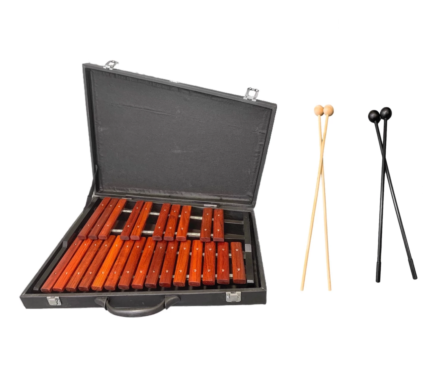 Popular use for classrooms and great for ensemble playing. Includes sturdy carry case and a two pairs of mallets.