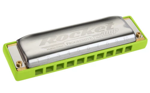 With the Rocket, HOHNER has developed one of the world’s loudest and most comfortable harmonica models. The green “Amp” version is technically identical but features covers without side vents, which facilitates a tight enclosure when cupping the harmonica with a microphone for amplified playing.