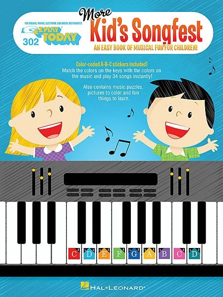 An easy book of music songs for children with 6 pages of instructional material including how to read notes and basic rhythm. What’s new with this book is the colour ABC stickers, so children can match the colours with the keys.