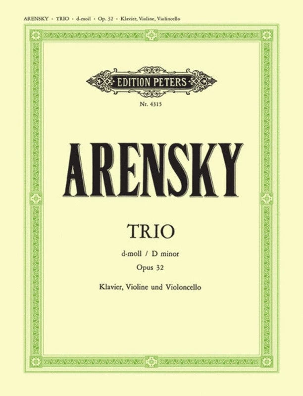 Hal Leonard Manuscript ARENSKY Piano Trio In D Minor Op. 32