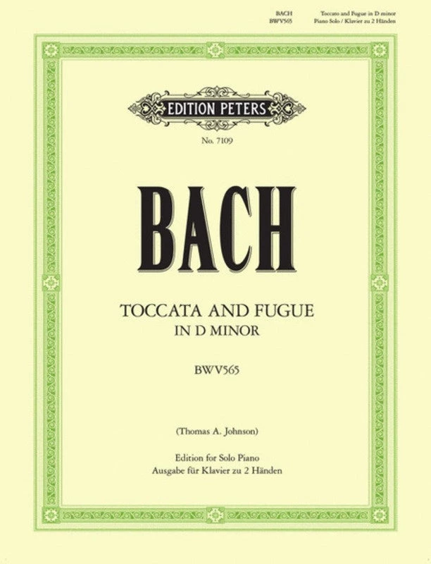 Toccata and Fugue in D minor, BWV 565, is a piece of organ music attributed to Johann Sebastian Bach. First published in 1833 through the efforts of Felix Mendelssohn, the piece quickly became popular, and is now one of the most famous works in the organ repertoire. This Edition Peters publication has been arranged for solo piano by Thomas A. Johnson.