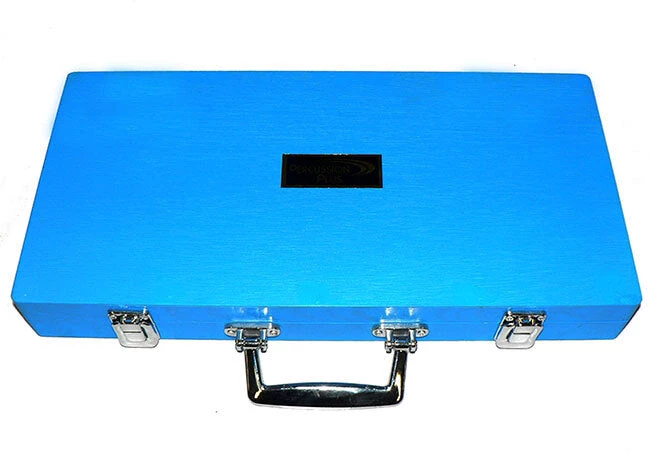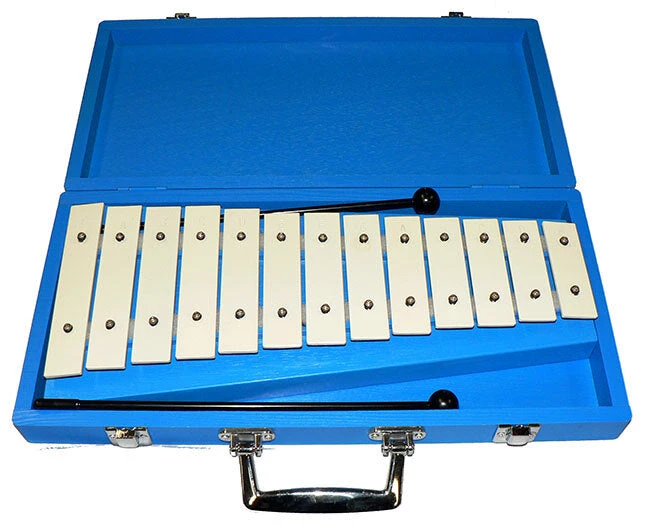 Percussion Plus 13-Note glockenspiel is fixed in a blue coloured wooden carry case. Comes with beaters.
