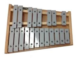 Percussion Plus 20-note glockenspiel with natural wood frame and natural metal coloured keys. Comes with beaters and wooden case.