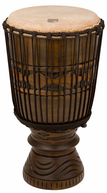 The Bougarabou is the perfect complement to a drum circle, adding deep and resonant bass tones. This drum is carved from a single piece of plantation grown mahogany and is topped off with a rope-tuned calfskin head. 12″ Head and 24″ Tall.